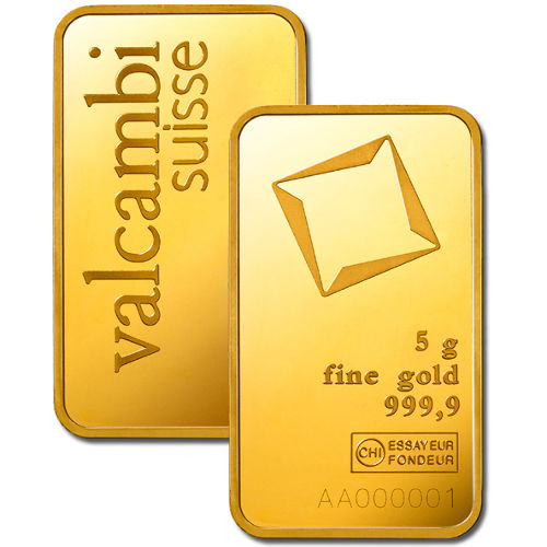 Ships in a plastic package that is blister proof and features an Assay card. Contains 5 Grams (.1607 Troy oz.) of .9999 pure gold. Obverse features the Valcambi logo. Reverse features the Valcambi Suisse corporate name. Each bar includes an orange assay card and individual serial number. Assayers mark on all bars.