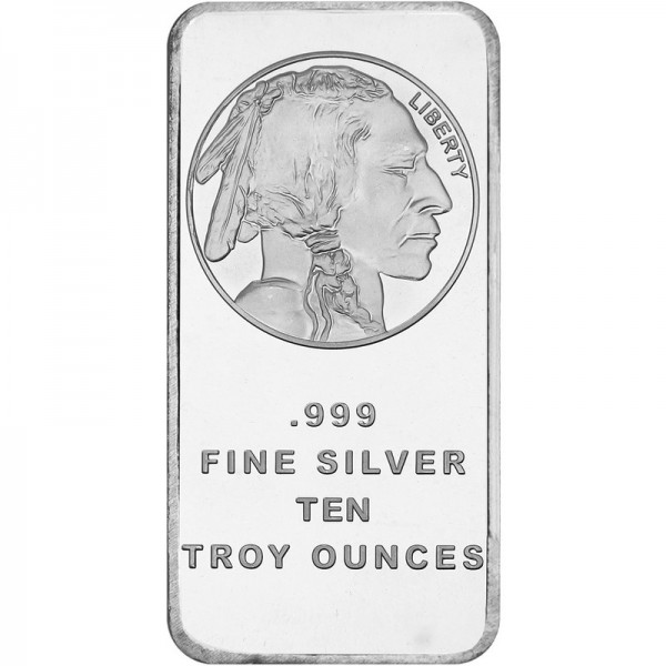 Buffalo Replica 10 Troy Ounce .999 Fine Silver Bar