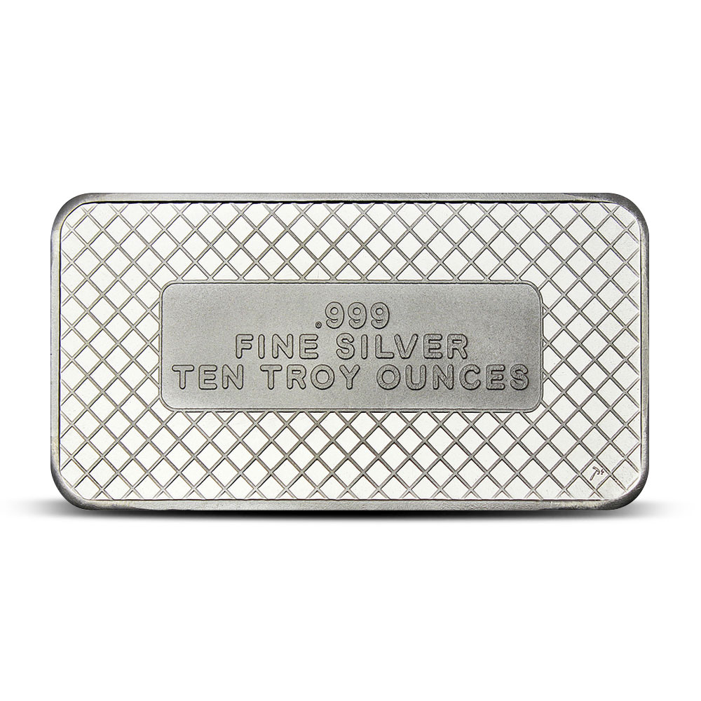 If you want to add something very patriotic to your precious metals holdings; the SilverTowne 10 ounce silver American flag bar may be a great choice. This sleek 10 oz. bar features an American flag design on the obverse. The stars and stripes take up the entire obverse side of the bar with no other inscriptions or markings present. The reverse of this silver bar features inscriptions of the bar’s weight and purity. In the background on the reverse is a criss-cross waffle pattern. The bar’s design is very elegant and is sure to make a great addition to any collection. Because of its patriotic design, these silver bars may also be favored by collectors.